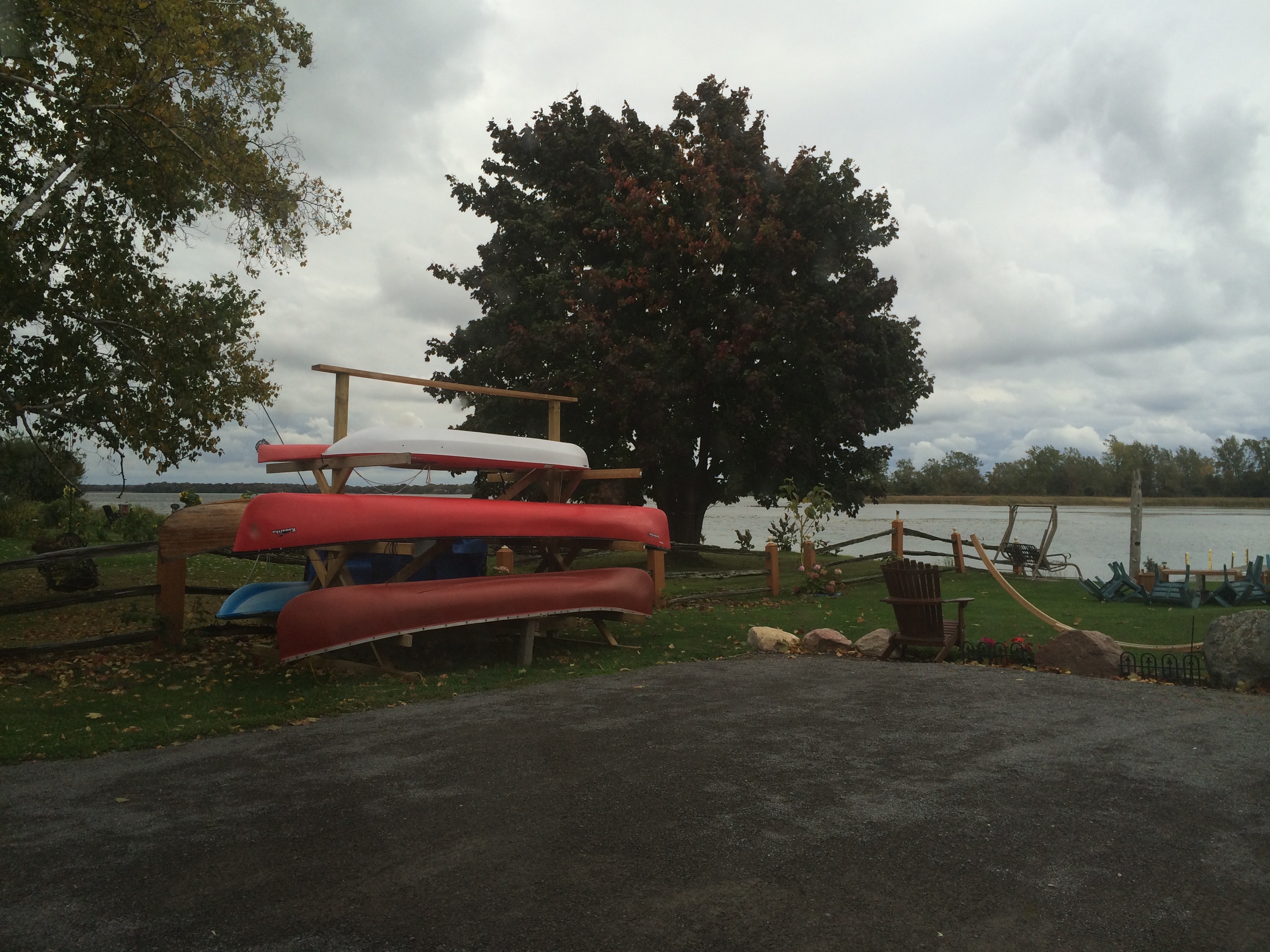The Twin Birch Cottages sit along West Lake, a calm, triangular-shaped lake off of Wellington Bay, surrounded by land. We didn’t have time – nor as New Mom did I have the energy to – but stand up paddle boarding would be wonderful in this lake. Smooth water, plenty of shoreline. This is also a hot spot for fishing, with a wide variety of species swimming around including bass, pike, walleye and perch. The vibe is decidedly calm. When we awoke in the morning to find our entire view from the kitchen and lower bedroom/TV room was of the water, we were smitten.